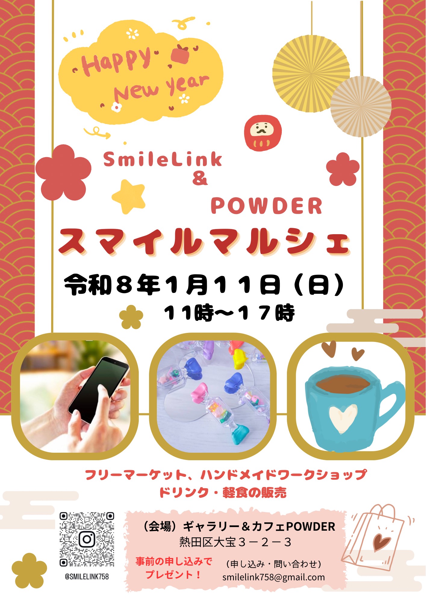 *件名に「スマイルマルシェ」に参加希望、とお書き下さい。